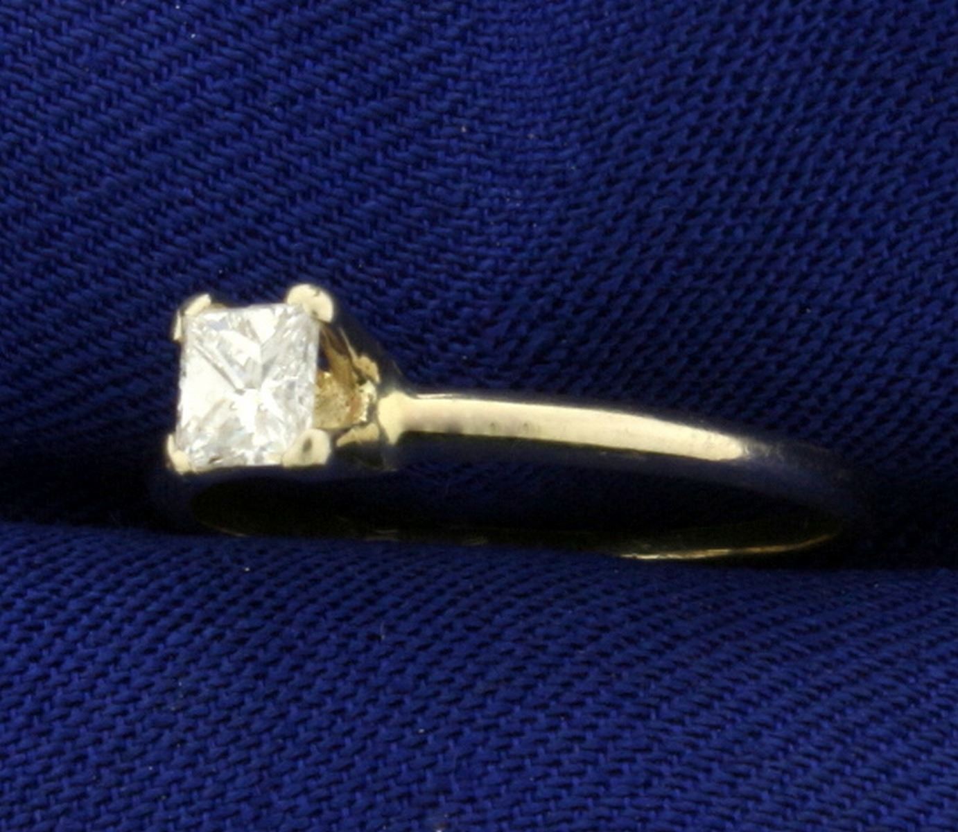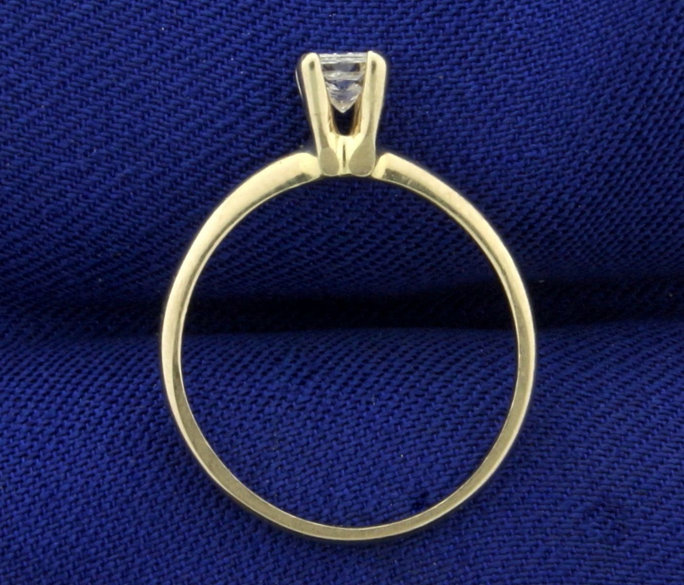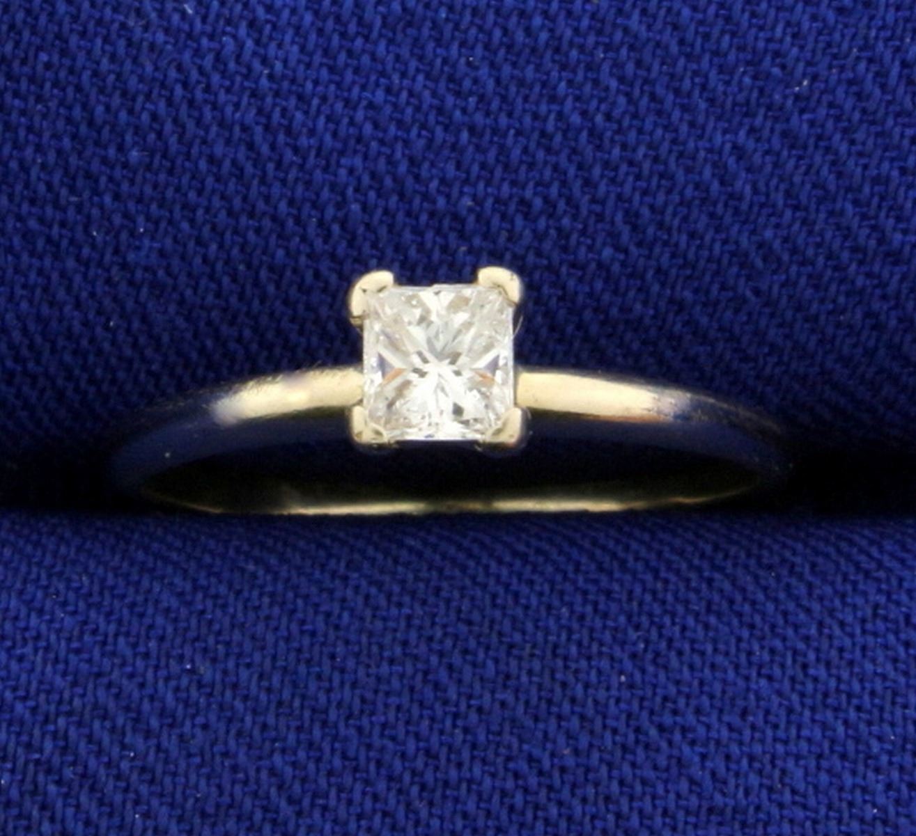 In 14K White Gold. Center Diamond is 1/4ct high quality princess shaped Diamond - VS/F. Size 5. 1.3g