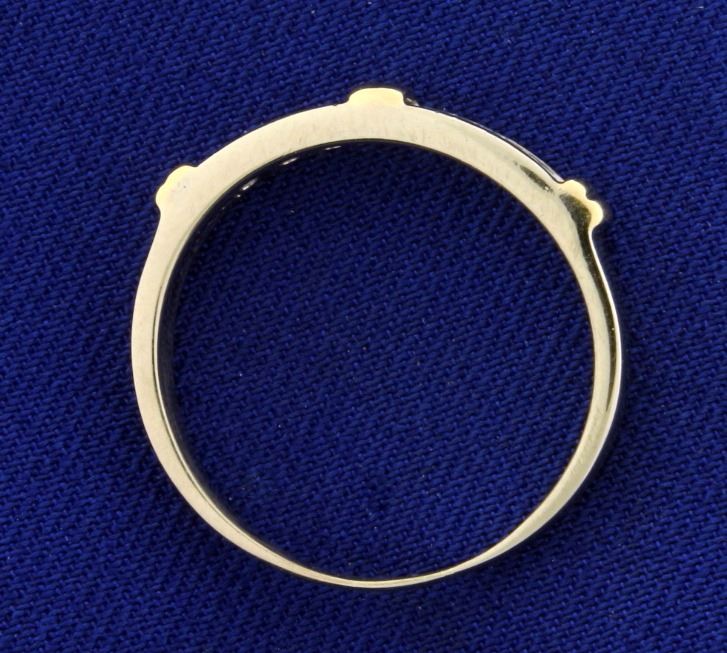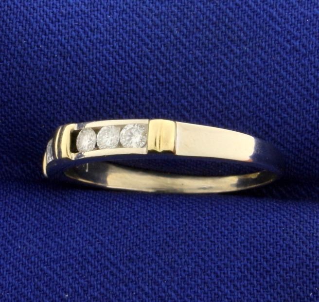 In 14k yellow and white gold. Contains 6 high quality diamonds of VS clarity/F color. Size 8. 2.2g.