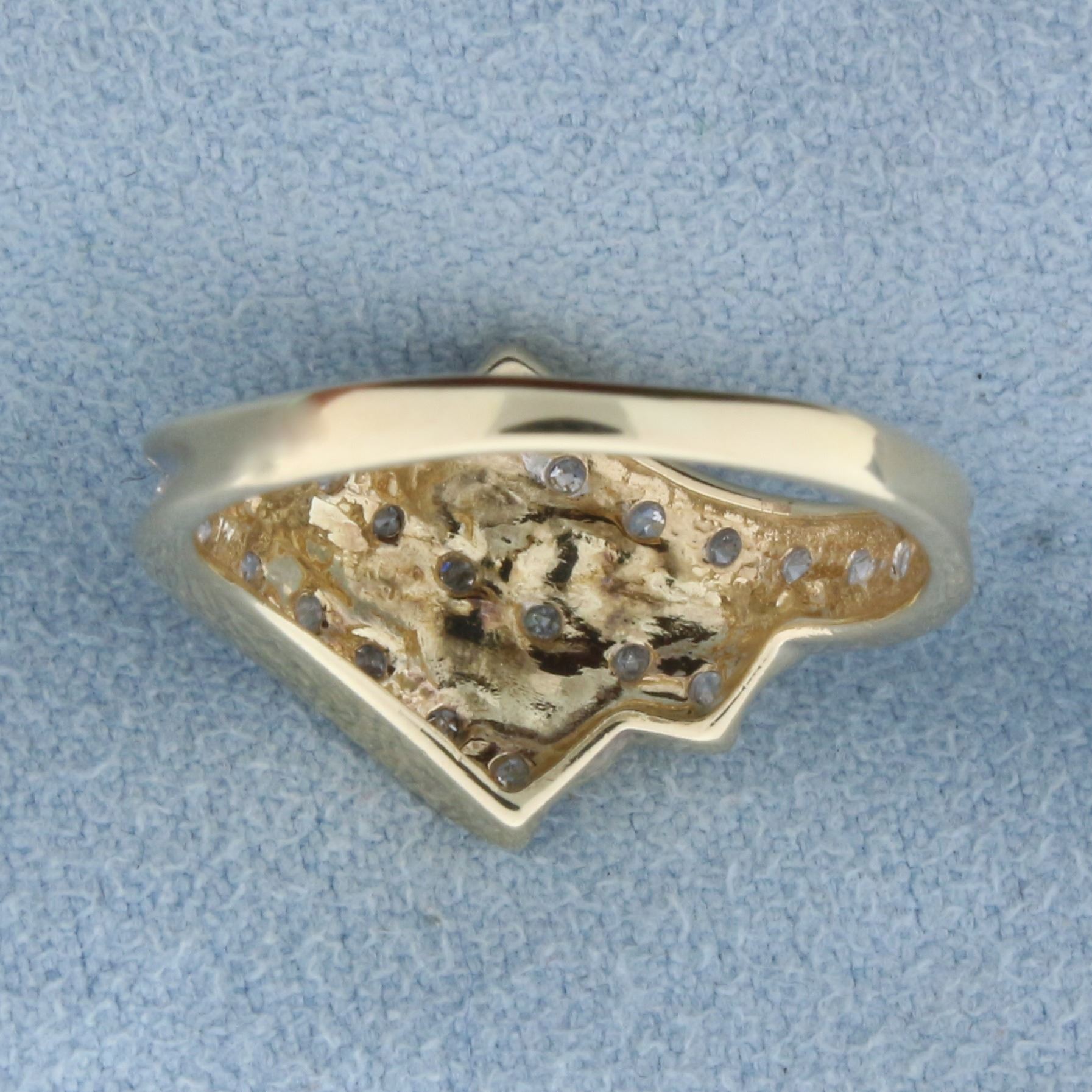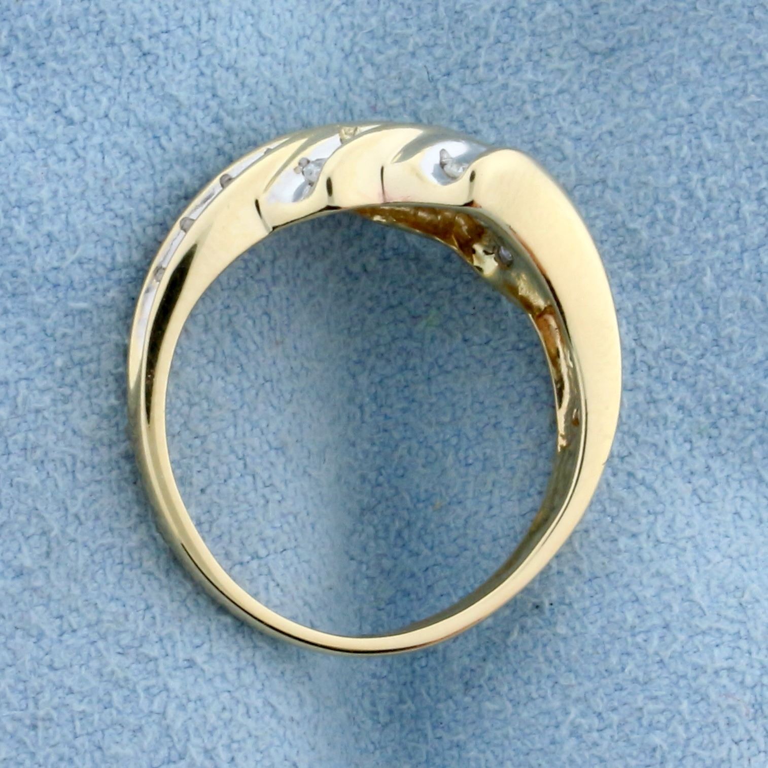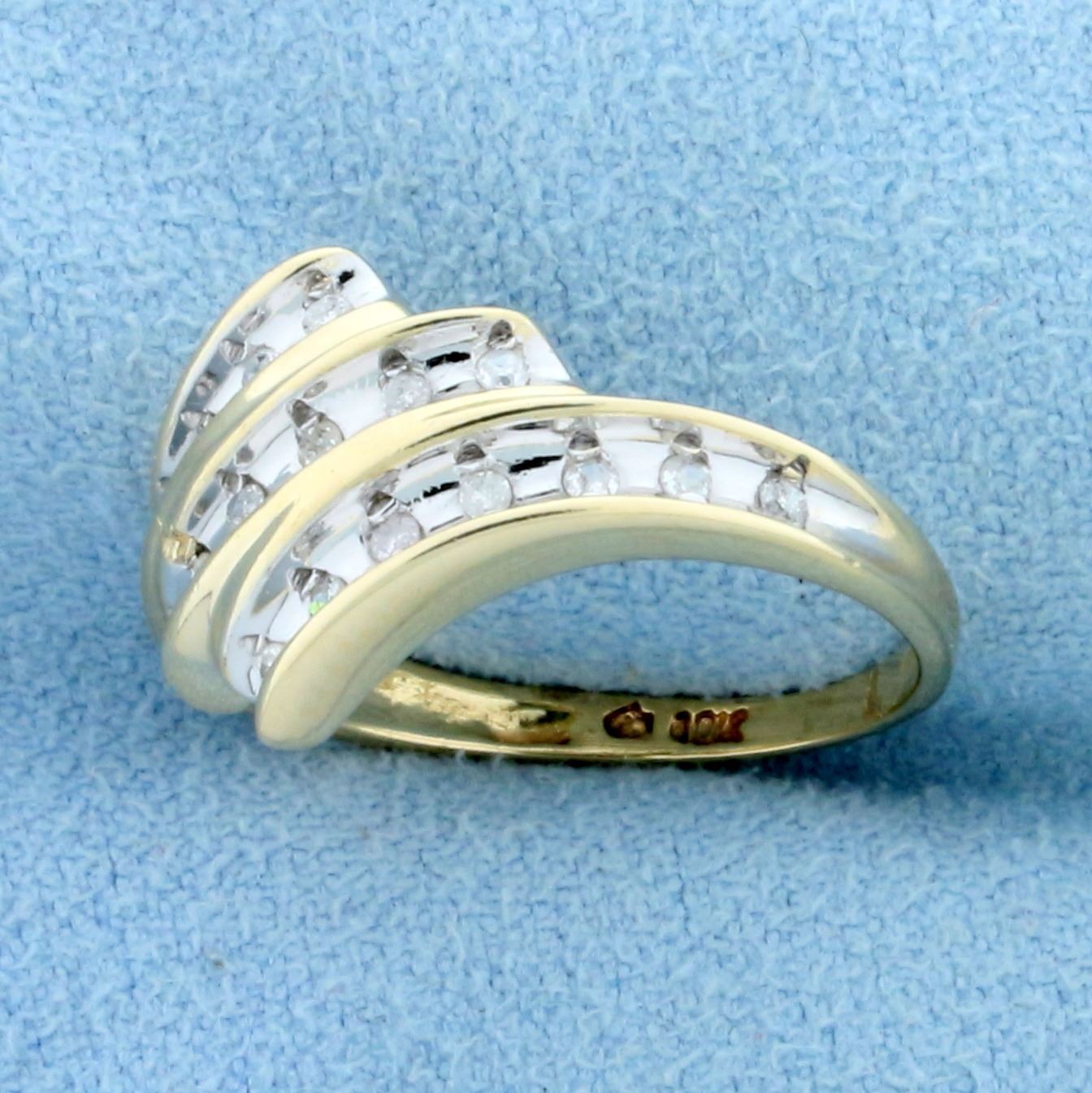 In 10K Yellow and White Gold. Contains twenty high quality diamonds, H color/I clarity. Size 5 1/4. 2.5g.