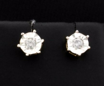 In 10K yellow & white gold, the earrings have 1/4ct total weight of I clarity/H color diamonds. They have friction backs. 1.1g
