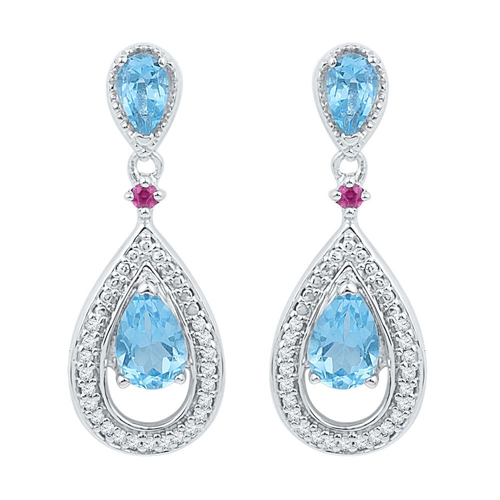 10kt White Gold Womens Oval Lab-Created Blue Topaz Diamond Dangle Earrings 1-5/8 Cttw