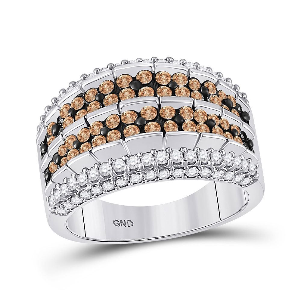 10kt White Gold Womens Round Brown Diamond Band Ring 1-1/2 Cttw