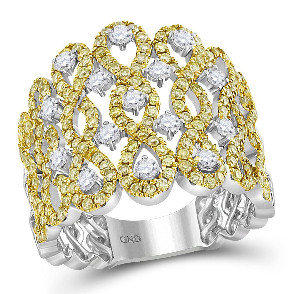 14kt White Gold Womens Round Yellow Diamond Twist Cocktail Ring 1-3/4 Cttw