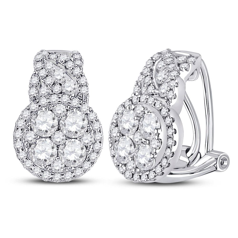 REF-156V7Y - 1 & 5/8 CTW Womens Round Diamond French-clip Hoop Cluster Earrings 14kt White Gold - REF-156V7Y