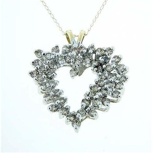 1.5 cttw. Diamond & Solid 10K Gold Heart Pendant & Chain Necklace.