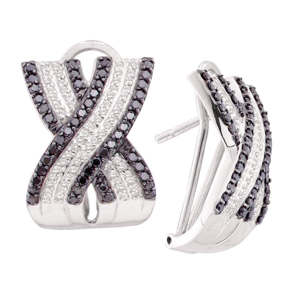 REF-104K9W- SKU: GD51942 ---- 1.5 CTW Black Color Diamond Crossover Hoop Earrings 14KT White Gold