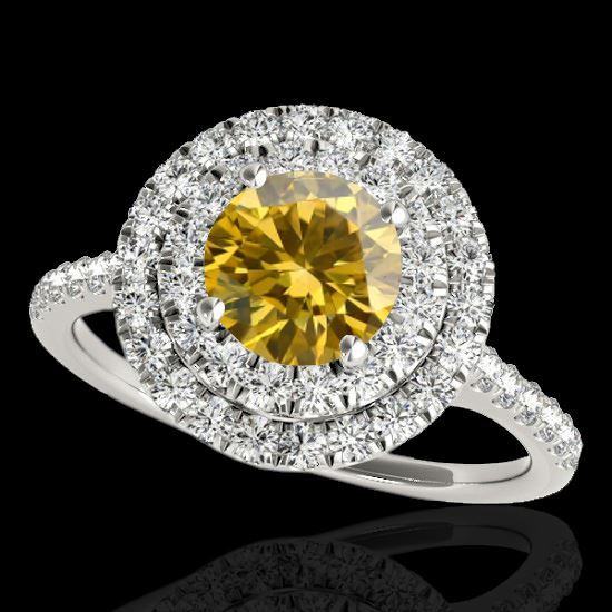 1.5 CTW Certified Si Fancy Intense Diamond Solitaire Halo Ring 2 Tone 10K White Gold ---- Luxury Designer Brand Ring Appraised Retail Price at $10,800 ---- SKU Number US33357 10k White gold Ring Size is 7, Ring measuring approx. Uniform, weighing in total approx. 4.3 grams. Made in the USA and is stamped 10k, Main stone 1.00 carat total weight containing 1 pieces of Intense Fancy Yellow color with SI quality Round shape cut Diamond , Stone #2 0.5 carat total weight containing 52 pieces of H-I color with VS/SI quality Round shape cut