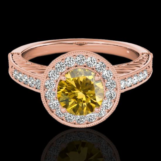 1.5 CTW Certified Si Fancy Intense Yellow Diamond Solitaire Halo Ring 10K Rose Gold ---- Luxury Designer Brand Ring Appraised Retail Price at $13,200 ---- SKU Number US33750 10k Rose gold Ring Size is 7, Ring measuring approx. Uniform, weighing in total approx. 6.4 grams. Made in the USA and is stamped 10k, Main stone 1.14 carat total weight containing 1 pieces of Intense Fancy Yellow color with SI quality Round shape cut Diamond , Stone #2 0.36 carat total weight containing 31 pieces of H-I color with VS/SI quality Round shape cut