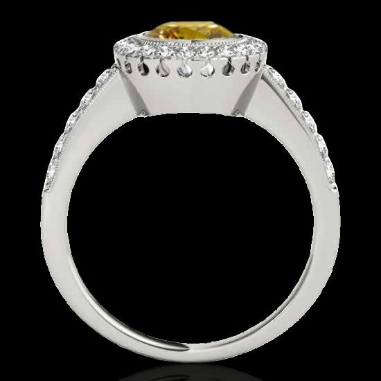 1.5 CTW Certified Si Fancy Intense Yellow Diamond Solitaire Halo Ring 10K White Gold ---- Luxury Designer Brand Ring Appraised Retail Price at $11,900 ---- SKU Number US34448 10k White gold Ring Size is 7, Ring measuring approx. Uniform, weighing in total approx. 5.2 grams. Made in the USA and is stamped 10k, Main stone 1.00 carat total weight containing 1 pieces of Intense Fancy Yellow color with SI quality Round shape cut Diamond , Stone #2 0.5 carat total weight containing 31 pieces of H-I color with VS/SI quality Round shape cut