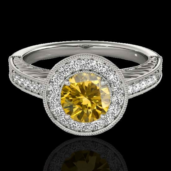 1.5 CTW Certified Si Fancy Intense Yellow Diamond Solitaire Halo Ring 10K White Gold ---- Luxury Designer Brand Ring Appraised Retail Price at $13,200 ---- SKU Number US33749 10k White gold Ring Size is 7, Ring measuring approx. Uniform, weighing in total approx. 6.4 grams. Made in the USA and is stamped 10k, Main stone 1.14 carat total weight containing 1 pieces of Intense Fancy Yellow color with SI quality Round shape cut Diamond , Stone #2 0.36 carat total weight containing 31 pieces of H-I color with VS/SI quality Round shape cut
