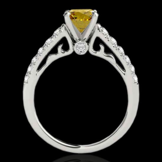 1.5 CTW Certified Si Fancy Intense Yellow Diamond Solitaire Ring 10K White Gold ---- Luxury Designer Brand Ring Appraised Retail Price at $11,400 ---- SKU Number US34991 10k White gold Ring Size is 7, Ring measuring approx. Uniform, weighing in total approx. 4.5 grams. Made in the USA and is stamped 10k, Main stone 1.00 carat total weight containing 1 pieces of Intense Fancy Yellow color with SI quality Round shape cut Diamond , Stone #2 0.5 carat total weight containing 14 pieces of H-I color with VS/SI quality Round shape cut