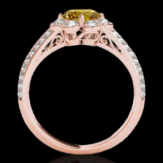 REF-171Y6K -34476 ---- 1.5 CTW Certified Si/I Fancy Intense Yellow Diamond Solitaire Halo Ring 10K Rose Gold ---- Luxury Designer Brand Ring Appraised at $11,350 Certificate Number US34476 10k Rose gold, Ring Size is 7, Ring measuring approx. Uniform, weighing in total approx. 5.2 grams. Made in the USA and is stamped 10k, Main stone 1 carat total weight containing 1 pieces of Intense Fancy Yellow color with SI quality Round shape cut Diamond , Stone #2 0.5 carat total weight containing 44 pieces of H-I color with VS/SI quality Round shape cut Diamond