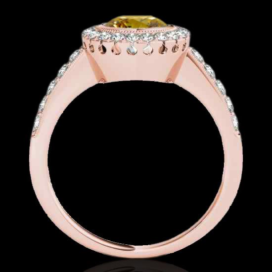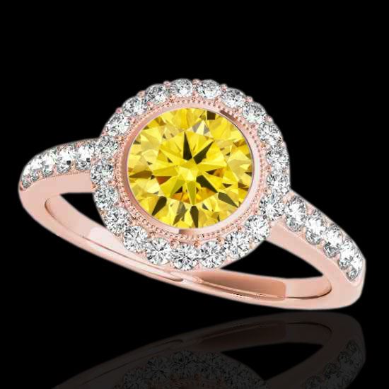 REF-180N2Y -34449 ---- 1.5 CTW Certified Si/I Fancy Intense Yellow Diamond Solitaire Halo Ring 10K Rose Gold ---- Luxury Designer Brand Ring Appraised at $11,900 Certificate Number US34449 10k Rose gold, Ring Size is 7, Ring measuring approx. Uniform, weighing in total approx. 5.2 grams. Made in the USA and is stamped 10k, Main stone 1 carat total weight containing 1 pieces of Intense Fancy Yellow color with SI quality Round shape cut Diamond , Stone #2 0.5 carat total weight containing 31 pieces of H-I color with VS/SI quality Round shape cut Diamond