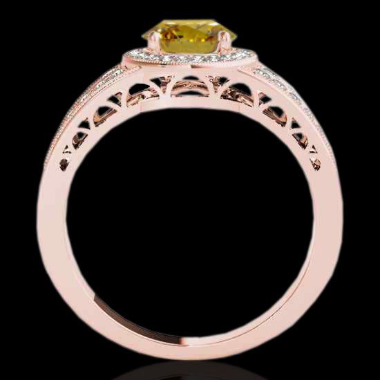 REF-180T2M -34077 ---- 1.5 CTW Certified Si/I Fancy Intense Yellow Diamond Solitaire Halo Ring 10K Rose Gold ---- Luxury Designer Brand Ring Appraised at $11,900 Certificate Number US34077 10k Rose gold, Ring Size is 7, Ring measuring approx. Uniform, weighing in total approx. 4.7 grams. Made in the USA and is stamped 10k, Main stone 1 carat total weight containing 1 pieces of Intense Fancy Yellow color with SI quality Round shape cut Diamond , Stone #2 0.5 carat total weight containing 50 pieces of H-I color with VS/SI quality Round shape cut Diamond