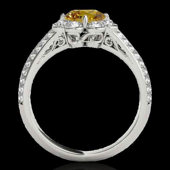REF-171T6M -34475 ---- 1.5 CTW Certified Si/I Fancy Intense Yellow Diamond Solitaire Halo Ring 10K White Gold ---- Luxury Designer Brand Ring Appraised at $11,350 Certificate Number US34475  10k White gold,  Ring Size is 7, Ring measuring approx. Uniform, weighing in total approx. 5.2 grams. Made in the USA and is stamped 10k, Main stone 1 carat total weight containing 1 pieces of Intense Fancy Yellow color with SI  quality Round shape cut Diamond , Stone #2 0.5 carat total weight containing 44 pieces of H-I color with  VS/SI quality Round shape cut Diamond