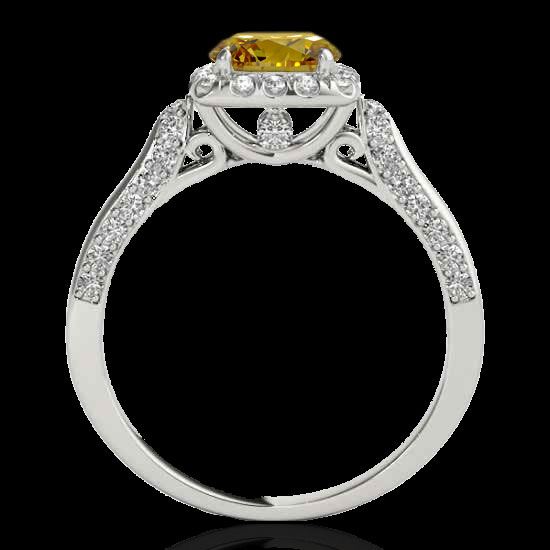 REF-176H4A -33371 ---- 1.5 CTW Certified Si/I Fancy Intense Yellow Diamond Solitaire Halo Ring 10K White Gold ---- Luxury Designer Brand Ring Appraised at $11,650 Certificate Number US33371 10k White gold, Ring Size is 7, Ring measuring approx. Uniform, weighing in total approx. 3.5 grams. Made in the USA and is stamped 10k, Main stone 1 carat total weight containing 1 pieces of Intense Fancy Yellow color with SI quality Round shape cut Diamond , Stone #2 0.5 carat total weight containing 48 pieces of H-I color with VS/SI quality Round shape cut Diamond