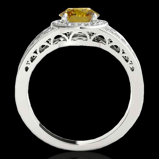 REF-180W2F -34076 ---- 1.5 CTW Certified Si/I Fancy Intense Yellow Diamond Solitaire Halo Ring 10K White Gold ---- Luxury Designer Brand Ring Appraised at $11,900 Certificate Number US34076 10k White gold, Ring Size is 7, Ring measuring approx. Uniform, weighing in total approx. 4.7 grams. Made in the USA and is stamped 10k, Main stone 1 carat total weight containing 1 pieces of Intense Fancy Yellow color with SI quality Round shape cut Diamond , Stone #2 0.5 carat total weight containing 50 pieces of H-I color with VS/SI quality Round shape cut Diamond