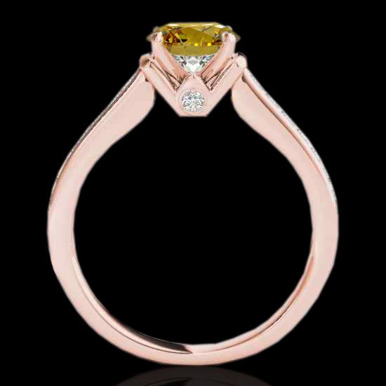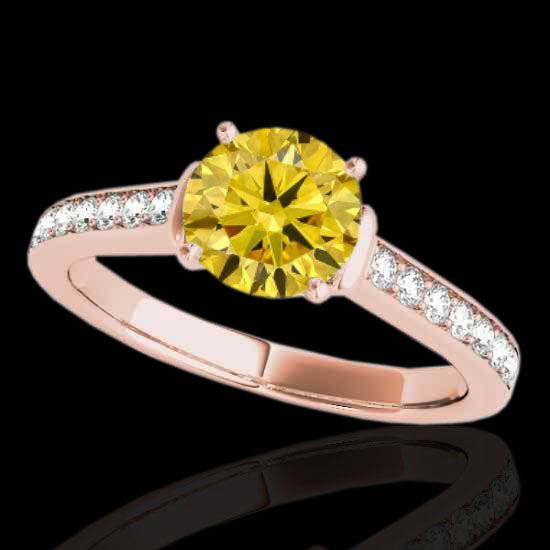 REF-236T4M -34933 ---- 1.5 CTW Certified Si/I Fancy Intense Yellow Diamond Solitaire Ring 10K Rose Gold ---- Luxury Designer Brand Ring Appraised at $15,600 Certificate Number US34933 10k Rose gold, Ring Size is 7, Ring measuring approx. Uniform, weighing in total approx. 3.7 grams. Made in the USA and is stamped 10k, Main stone 1 carat total weight containing 1 pieces of Intense Fancy Yellow color with SI quality Round shape cut Diamond , Stone #2 0.5 carat total weight containing 26 pieces of H-I color with VS/SI quality Round shape cut Diamond