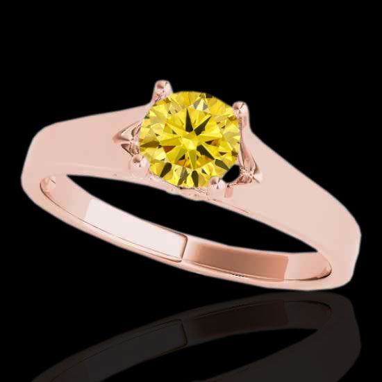 REF-254A5X -35172 ---- 1.5 CTW Certified Si/I Fancy Intense Yellow Diamond Solitaire Ring 10K Rose Gold ---- Luxury Designer Brand Ring Appraised at $15,400 Certificate Number US35172 10k Rose gold, Ring Size is 7, Ring measuring approx. Uniform, weighing in total approx. 4.8 grams. Made in the USA and is stamped 10k, Main stone 1.5 carat total weight containing 1 pieces of Intense Fancy Yellow color with SI quality Round shape cut Diamond , Stone #2 carat total weight containing pieces of color with quality shape cut