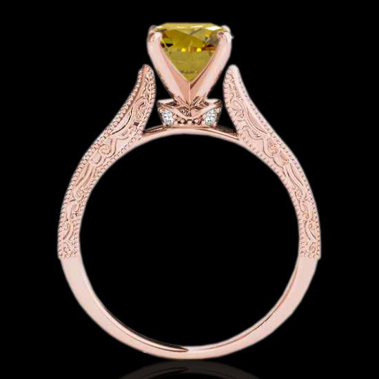 REF-221N8Y -34737 ---- 1.5 CTW Certified Si Intense Yellow Diamond Solitaire Antique Ring 10K Rose Gold ---- Luxury Designer Brand Ring Appraised at $14,650 Certificate Number US34737 10k Rose gold, Ring Size is 7, Ring measuring approx. Uniform, weighing in total approx. 3.3 grams. Made in the USA and is stamped 10k, Main stone 1.29 carat total weight containing 1 pieces of Intense Fancy Yellow color with SI quality Round shape cut Diamond , Stone #2 0.21 carat total weight containing 16 pieces of H-I color with VS/SI quality Round shape cut Diamond