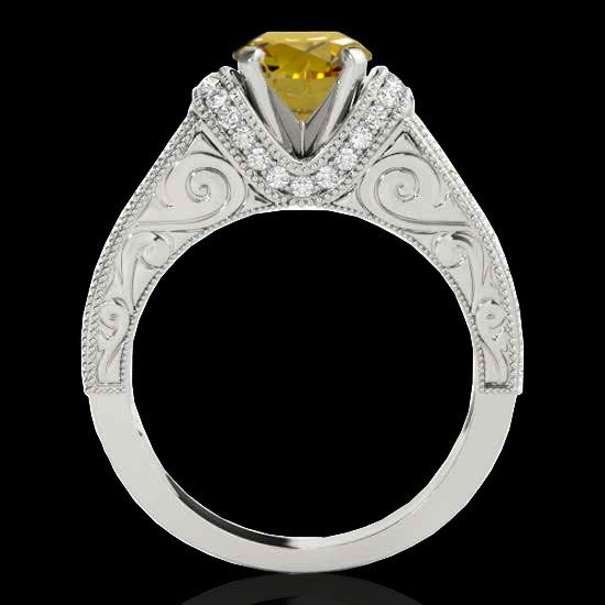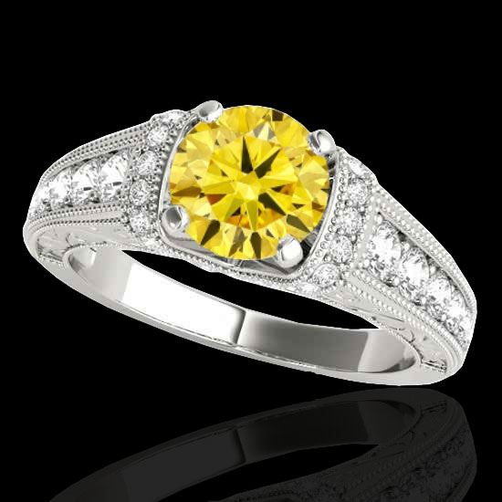 REF-180Y2K -34781 ---- 1.5 CTW Certified Si Intense Yellow Diamond Solitaire Antique Ring 10K White Gold ---- Luxury Designer Brand Ring Appraised at $11,900 Certificate Number US34781 10k White gold, Ring Size is 7, Ring measuring approx. Uniform, weighing in total approx. 5.3 grams. Made in the USA and is stamped 10k, Main stone 1 carat total weight containing 1 pieces of Intense Fancy Yellow color with SI quality Round shape cut Diamond , Stone #2 0.5 carat total weight containing 42 pieces of H-I color with VS/SI quality Round shape cut Diamond