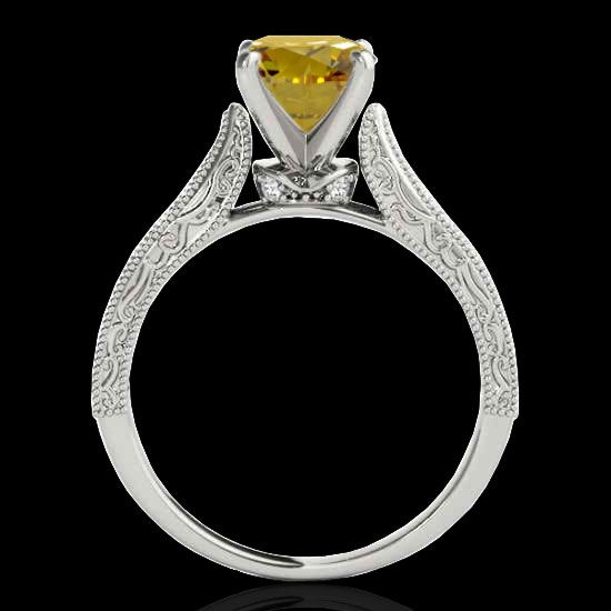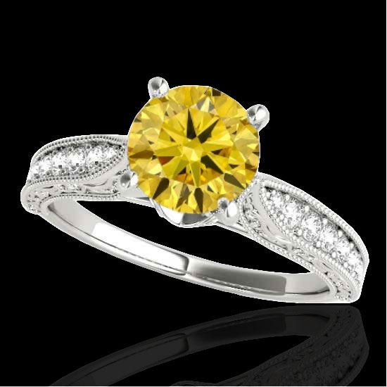1.5 CTW Certified Si Intense Yellow Diamond Solitaire Antique Ring 10K White Gold ---- Luxury Designer Brand Ring Appraised Retail Price at $14,650 ---- SKU Number US34736 10k White gold Ring Size is 7, Ring measuring approx. Uniform, weighing in total approx. 3.3 grams. Made in the USA and is stamped 10k, Main stone 1.29 carat total weight containing 1 pieces of Intense Fancy Yellow color with SI quality Round shape cut Diamond , Stone #2 0.21 carat total weight containing 16 pieces of H-I color with VS/SI quality Round shape cut