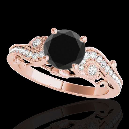 REF-59H5A -34805 ---- 1.5 CTW Certified VS Black Diamond Solitaire Antique Ring 10K Rose Gold ---- Luxury Designer Brand Ring Appraised at $3,600 Certificate Number US34805 10k Rose gold, Ring Size is 7, Ring measuring approx. Uniform, weighing in total approx. 3.8 grams. Made in the USA and is stamped 10k, Main stone 1.25 carat total weight containing 1 pieces of Black Opaque color with VS quality Round shape cut Diamond , Stone #2 0.25 carat total weight containing 30 pieces of H-I color with VS/SI quality Round shape cut Diamond