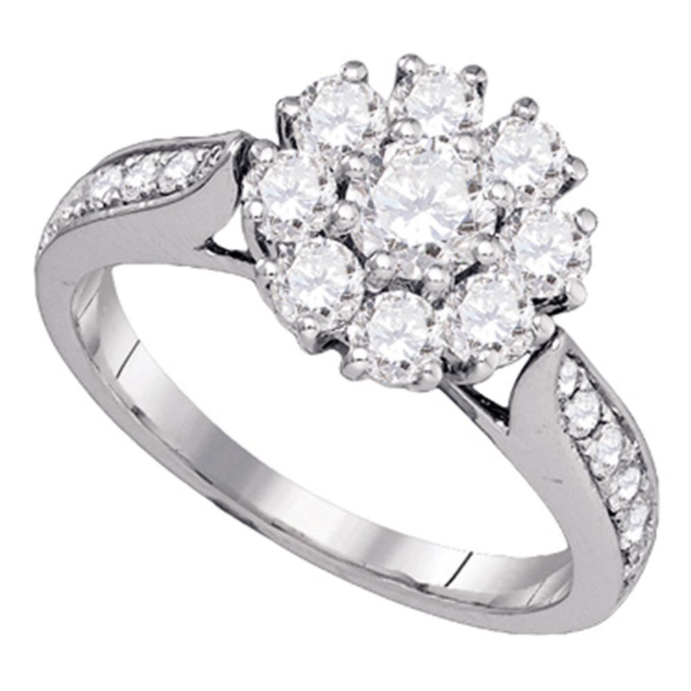 REF-209H9M- SKU: GD69174 ---- 1.5 CTW Diamond Cluster Bridal Engagement Ring 14KT White Gold