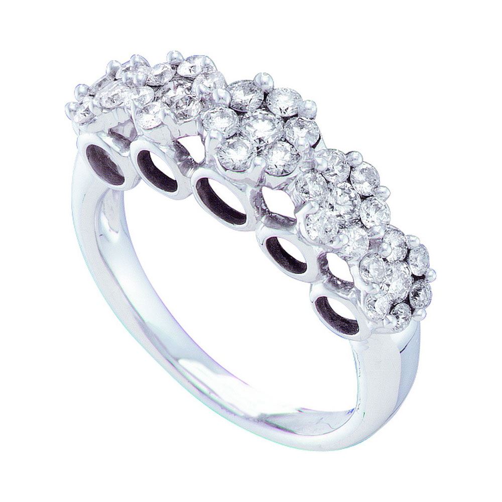 REF-157N5F- SKU: GD39420 ---- 1.5 CTW Diamond Multi Flower Cluster Ring 14KT White Gold