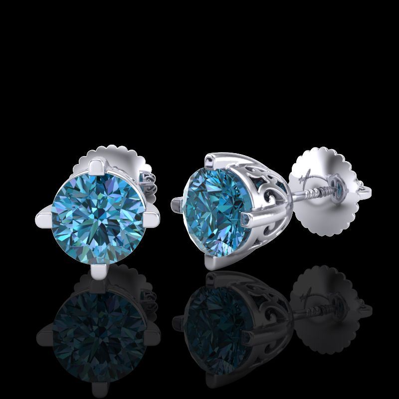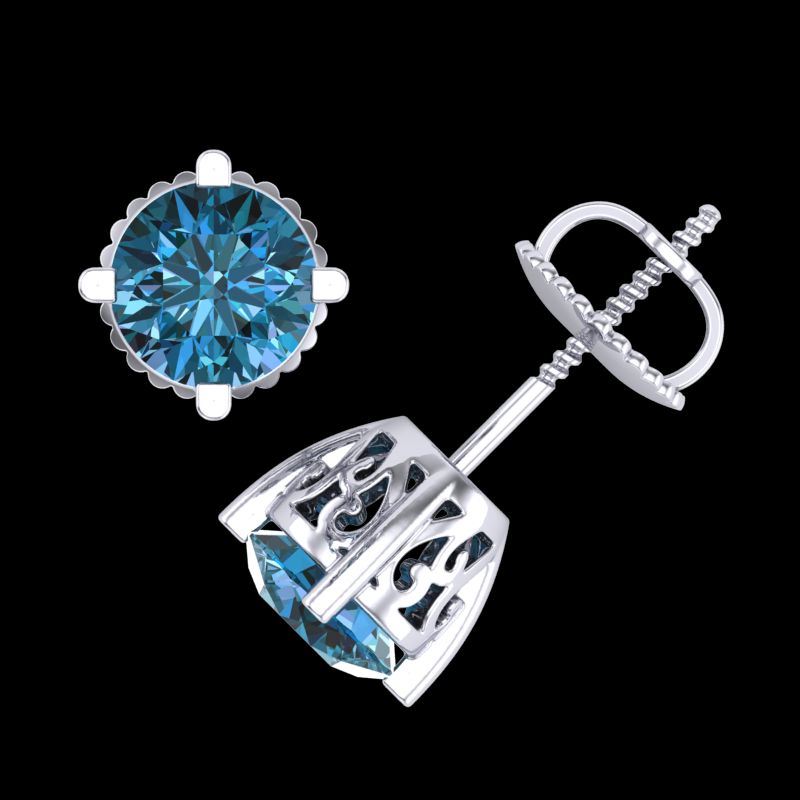 1.5 CTW Fancy Intense Blue Diamond Art Deco Stud Earrings 18K White Gold ---- Luxury Designer Brand Earring Appraised Retail Price at $17,400 ---- SKU Number US38069 18k White gold Earring Size is Larger, Earring measuring approx. Uniform, weighing in total approx. 4.5 grams. Made in the USA and is stamped 18k, Main stone 1.5 carat total weight containing 2 pieces of Intense Fancy Blue color with SI quality Round shape cut Diamond , Stone #2 carat total weight containing pieces of color with quality shape cut