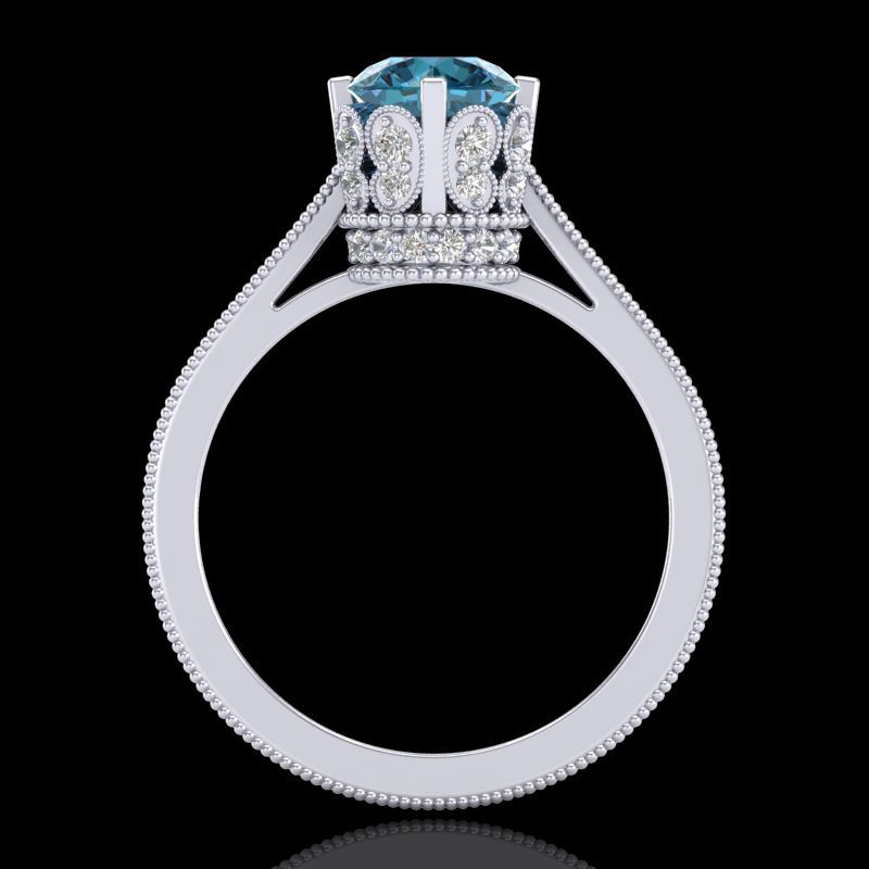 REF-209M3H -37348 ---- 1.5 CTW Fancy Intense Blue Diamond Engagement Art Deco Ring 18K White Gold ---- Luxury Designer Brand Ring Appraised at $13,800 Certificate Number US37348 18k White gold, Ring Size is 7, Ring measuring approx. Uniform, weighing in total approx. 5 grams. Made in the USA and is stamped 18k, Main stone 1 carat total weight containing 1 pieces of Intense Fancy Blue color with SI quality Round shape cut Diamond , Stone #2 0.5 carat total weight containing 30 pieces of H-I color with VS/SI quality Round shape cut Diamond