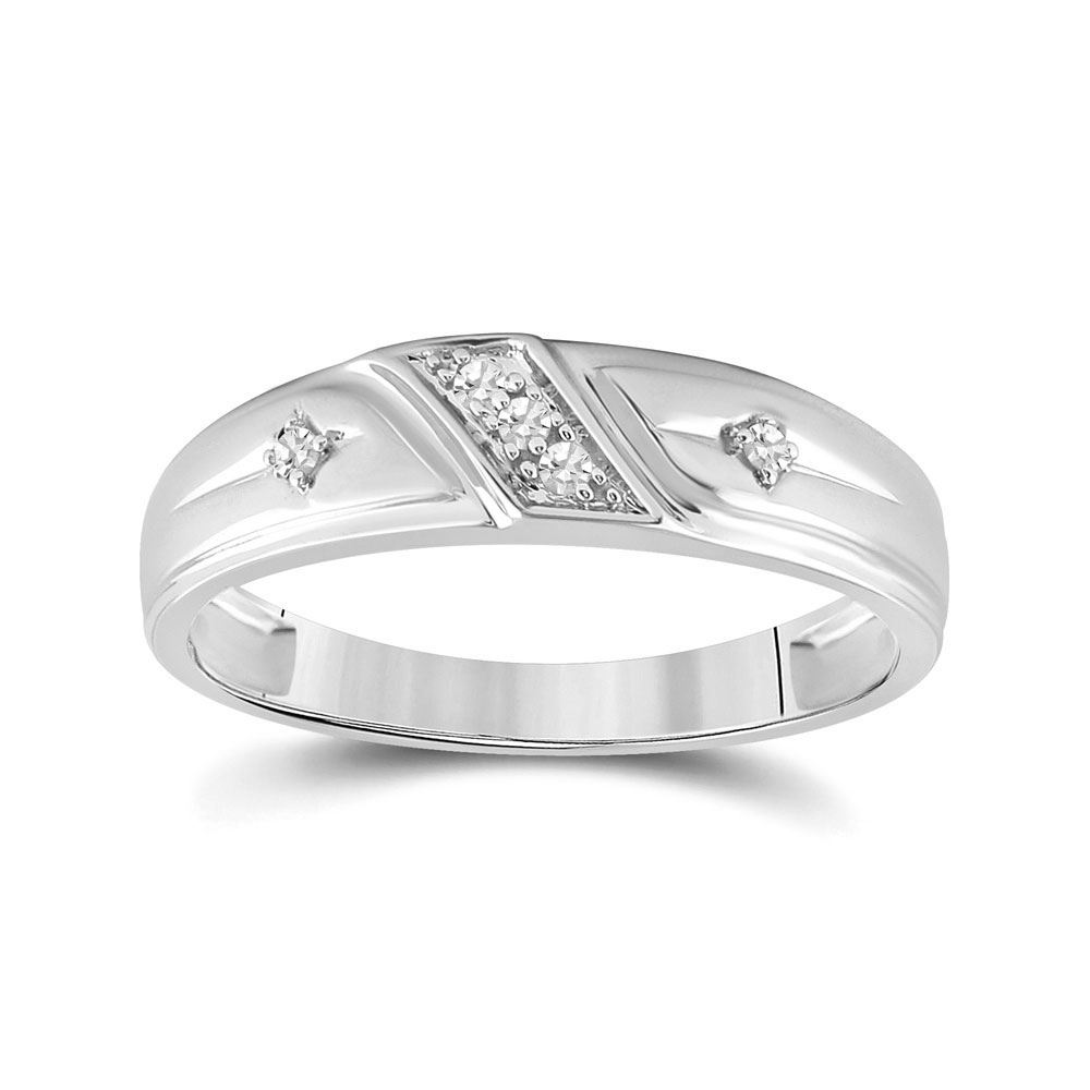 14kt White Gold His & Hers Round Diamond Solitaire Cross Matching Bridal Wedding Ring Band Set 1/6 Cttw