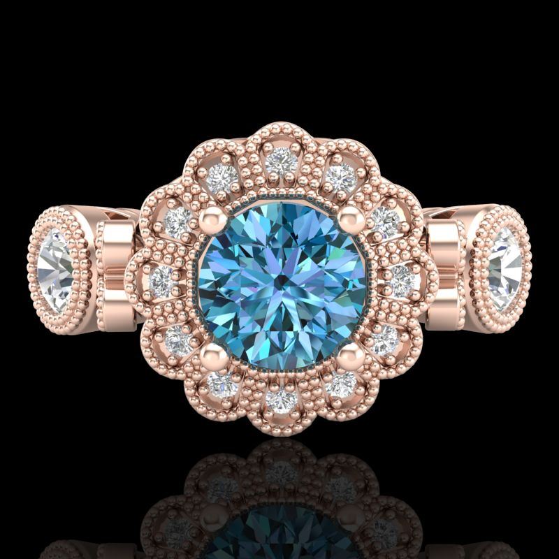 REF-218H2A -37853 ---- 1.5 CTW Intense Blue Diamond Solitaire Art Deco 3 Stone Ring 18K Rose Gold ---- Luxury Designer Brand 3 stone ring Appraised at $14,400 Certificate Number US37853 18k Rose gold, 3 stone ring Size is 7, 3 stone ring measuring approx. Uniform, weighing in total approx. 7.4 grams. Made in the USA and is stamped 18k, Main stone 0.78 carat total weight containing 1 pieces of Intense Fancy Blue color with SI quality Round shape cut Diamond , Stone #2 0.53 carat total weight containing 2 pieces of H-I color with VS/SI quality Round shape cut Diamond , Stone #3 0.19 carat total weight containing 12 pieces of G-H color with VS/SI quality Round shape cut Diamond