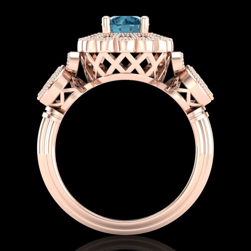 REF-218H2A -37853 ---- 1.5 CTW Intense Blue Diamond Solitaire Art Deco 3 Stone Ring 18K Rose Gold ---- Luxury Designer Brand 3 stone ring Appraised at $14,400 Certificate Number US37853 18k Rose gold, 3 stone ring Size is 7, 3 stone ring measuring approx. Uniform, weighing in total approx. 7.4 grams. Made in the USA and is stamped 18k, Main stone 0.78 carat total weight containing 1 pieces of Intense Fancy Blue color with SI quality Round shape cut Diamond , Stone #2 0.53 carat total weight containing 2 pieces of H-I color with VS/SI quality Round shape cut Diamond , Stone #3 0.19 carat total weight containing 12 pieces of G-H color with VS/SI quality Round shape cut Diamond