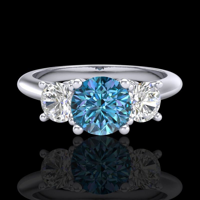 REF-174T5M -38265 ---- 1.5 CTW Intense Blue Diamond Solitaire Art Deco 3 Stone Ring 18K White Gold ---- Luxury Designer Brand 3 stone ring Appraised at $10,550 Certificate Number US38265  18k White gold,  3 stone ring Size is 7, 3 stone ring measuring approx. Uniform, weighing in total approx. 7 grams. Made in the USA and is stamped 18k, Main stone 0.78 carat total weight containing 1 pieces of Intense Fancy Blue color with SI quality Round shape cut Diamond , Stone #2 0.52 carat total weight containing 2 pieces of H-I color with  VS/SI quality Round shape cut Diamond , Stone #3 0.2 carat total weight containing 6 pieces of G-H color with VS/SI quality  Round shape cut Diamond