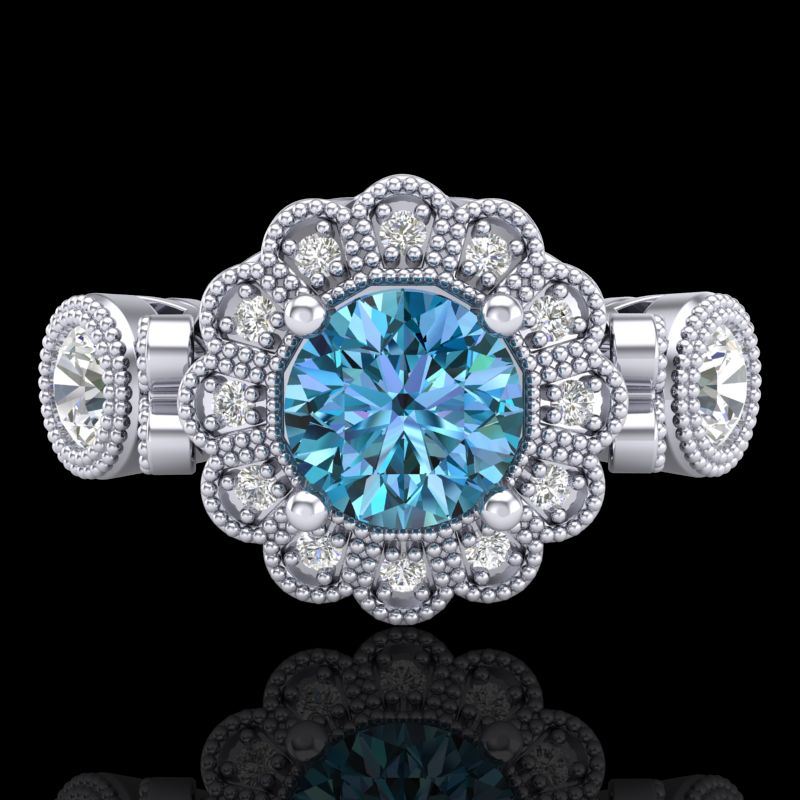 REF-218W2F -37852 ---- 1.5 CTW Intense Blue Diamond Solitaire Art Deco 3 Stone Ring 18K White Gold ---- Luxury Designer Brand 3 stone ring Appraised at $14,400 Certificate Number US37852 18k White gold, 3 stone ring Size is 7, 3 stone ring measuring approx. Uniform, weighing in total approx. 7.4 grams. Made in the USA and is stamped 18k, Main stone 0.78 carat total weight containing 1 pieces of Intense Fancy Blue color with SI quality Round shape cut Diamond , Stone #2 0.53 carat total weight containing 2 pieces of H-I color with VS/SI quality Round shape cut Diamond , Stone #3 0.19 carat total weight containing 12 pieces of G-H color with VS/SI quality Round shape cut Diamond