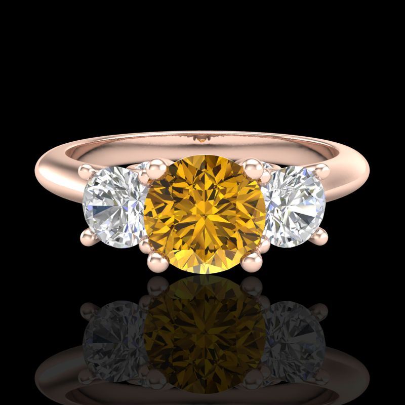 1.5 CTW Intense Fancy Yellow Diamond Art Deco 3 Stone Ring 18K Rose Gold ---- Luxury Designer Brand 3 stone ring Appraised Retail Price at $11,500 ---- SKU Number US38268 18k Rose gold 3 stone ring Size is 7, 3 stone ring measuring approx. Uniform, weighing in total approx. 7 grams. Made in the USA and is stamped 18k, Main stone 0.78 carat total weight containing 1 pieces of Intense Fancy Yellow color with SI quality Round shape cut Diamond , Stone #2 0.52 carat total weight containing 2 pieces of H-I color with VS/SI quality Round shape cut