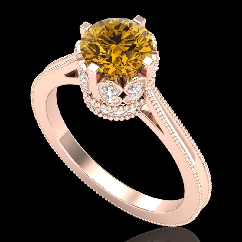 REF-209F3N -37351 ---- 1.5 CTW Intense Fancy Yellow Diamond Engagement Art Deco Ring 18K Rose Gold ---- Luxury Designer Brand Ring Appraised at $13,800 Certificate Number US37351  18k Rose gold,  Ring Size is 7, Ring measuring approx. Uniform, weighing in total approx. 5 grams. Made in the USA and is stamped 18k, Main stone 1 carat total weight containing 1 pieces of Intense Fancy Yellow color with SI quality Round shape cut Diamond , Stone #2 0.5 carat total weight containing 30 pieces of H-I color with  VS/SI quality Round shape cut Diamond