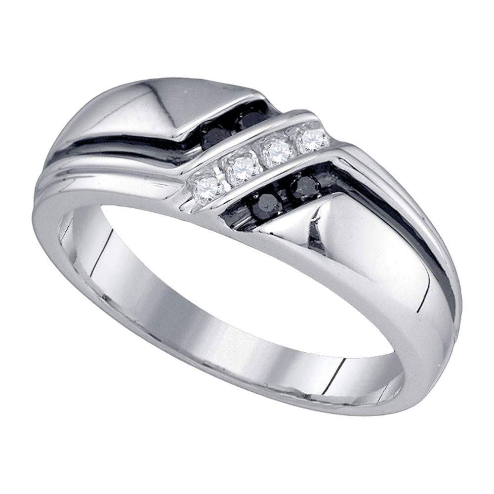 14kt White Gold Mens Round Black Color Enhanced Diamond Band Ring 1/5 Cttw
