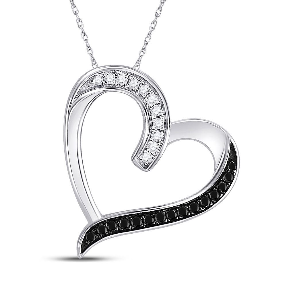 10kt White Gold Womens Round Black Color Enhanced Diamond Heart Pendant 1/5 Cttw