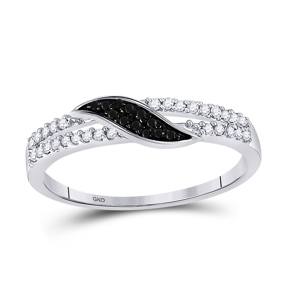 10k White Gold Black Color Enhanced Diamond Slender Womens Band Ring Unique 1/6 Cttw