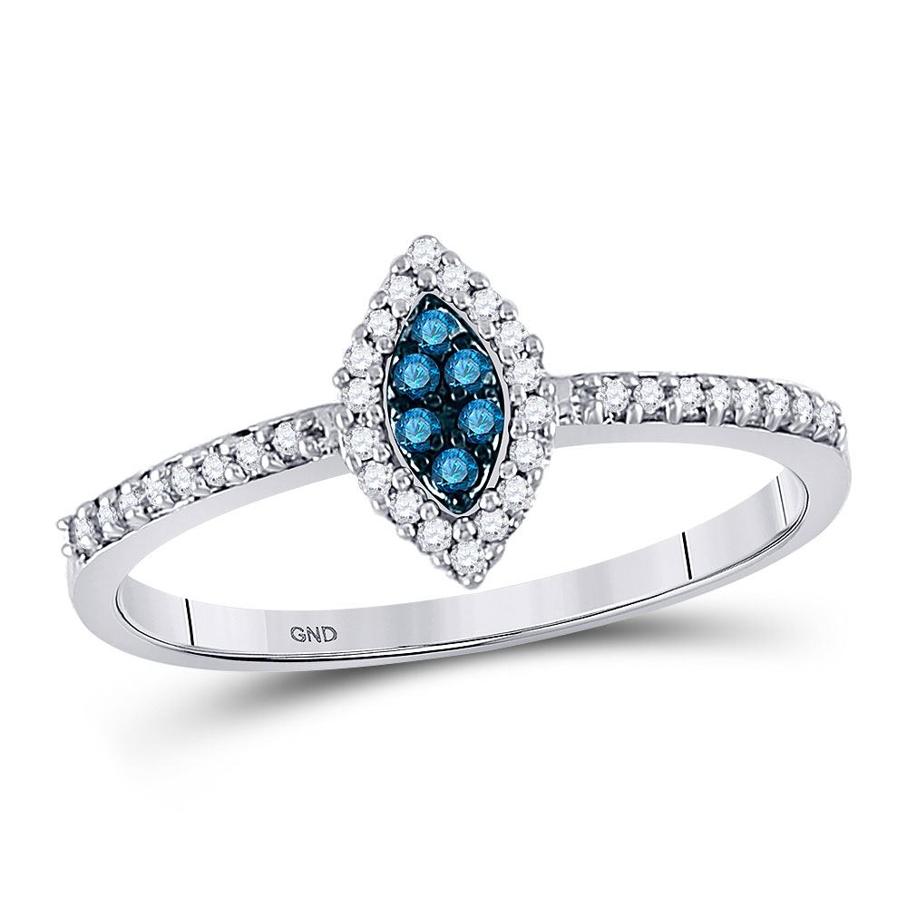 10kt White Gold Womens Round Blue Color Enhanced Diamond Cluster Ring 1/5 Cttw