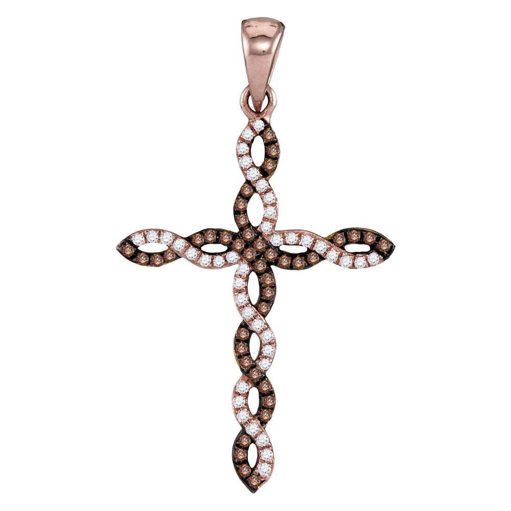REF-15N5Y ---- 1/5 CTW Round Brown Diamond Cross Faith Pendant 14kt Rose Gold