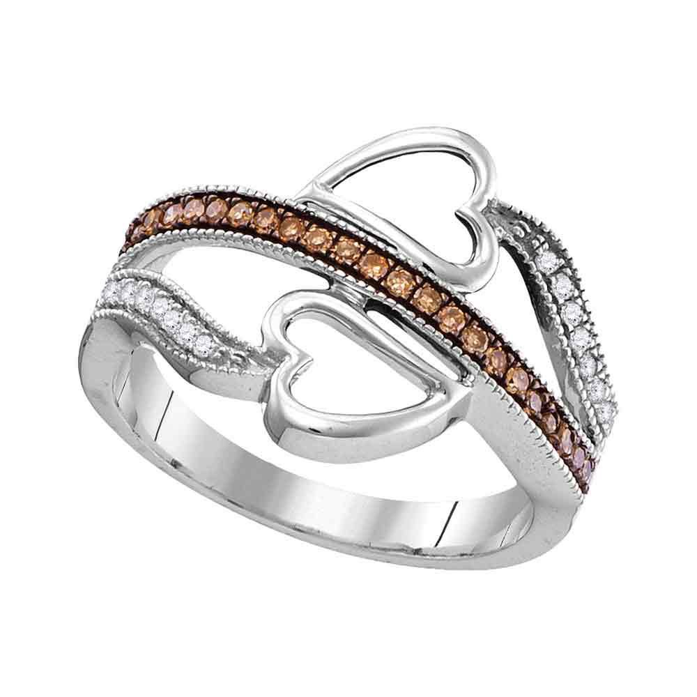 REF-18F3M ---- 1/5 CTW Round Brown Diamond Heart Crossover Ring 10kt White Gold