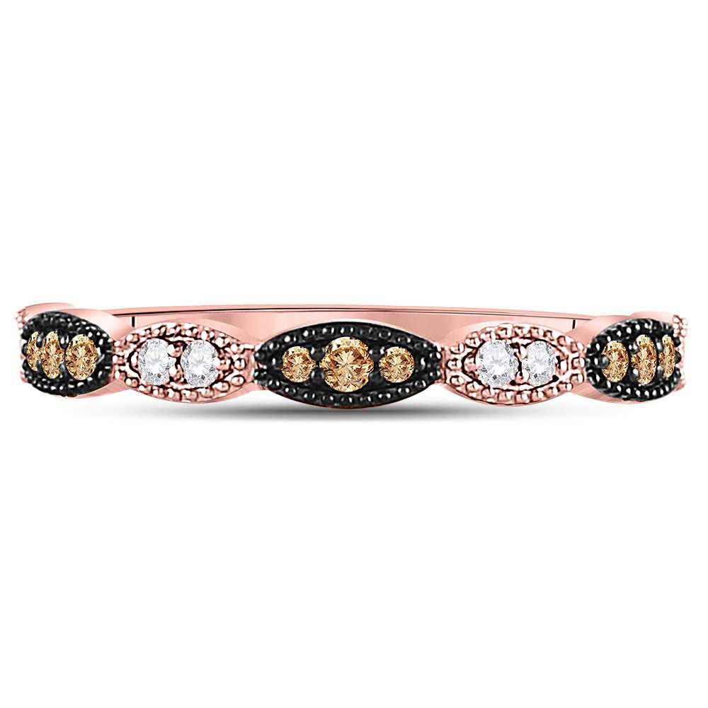 10kt Rose Gold Womens Round Brown Diamond Stackable Band Ring 1/5 Cttw