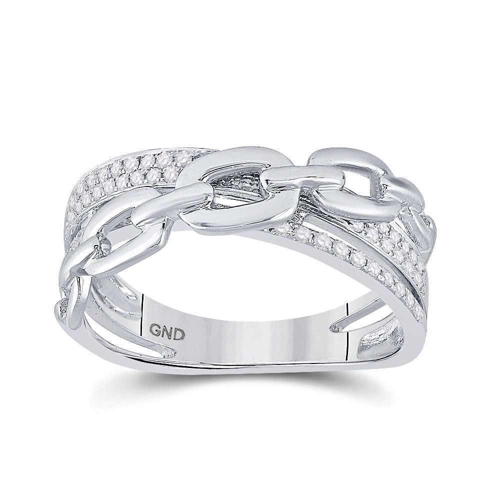 10kt White Gold Womens Round Diamond Chain Link Crossover Band Ring 1/5 Cttw