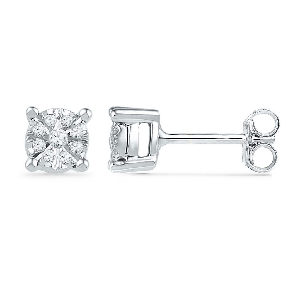 10kt White Gold Womens Round Diamond Cluster Screwback Earrings 1/5 Cttw