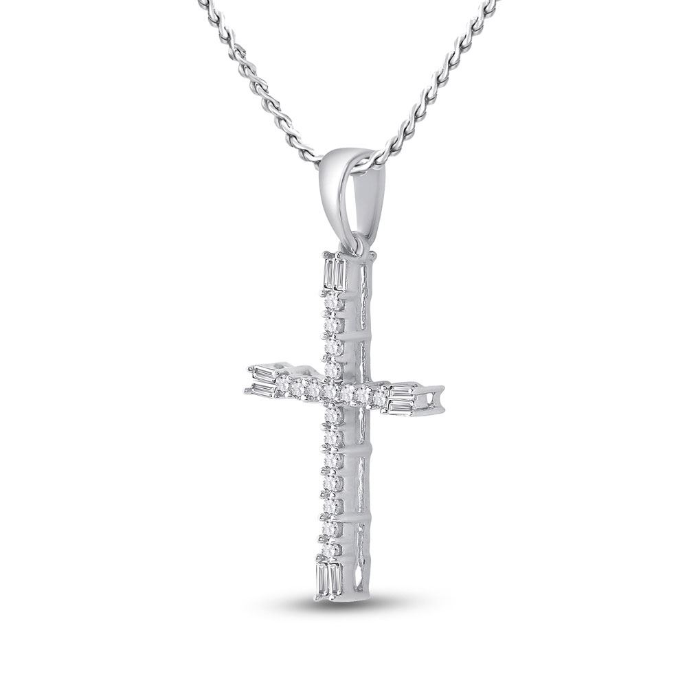 REF-9F3M ---- 1/5 CTW Round Diamond Cross Pendant 10kt White Gold