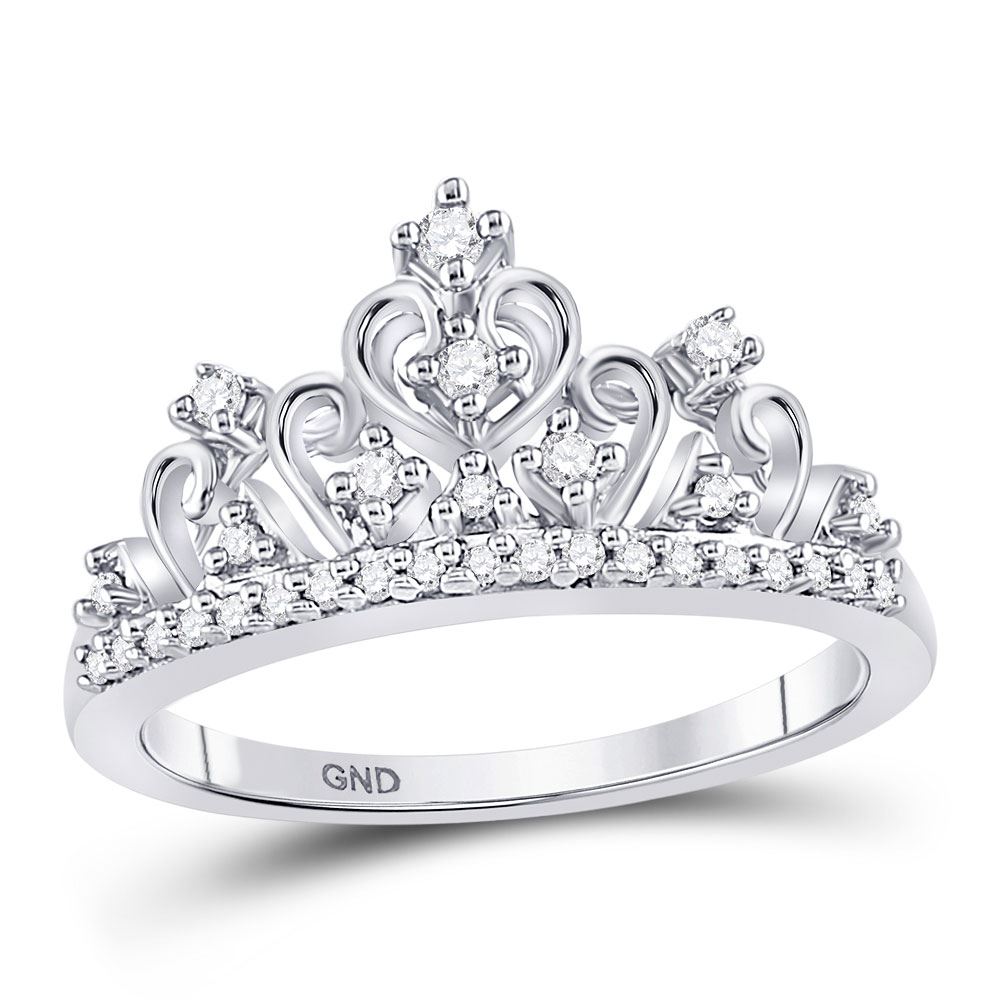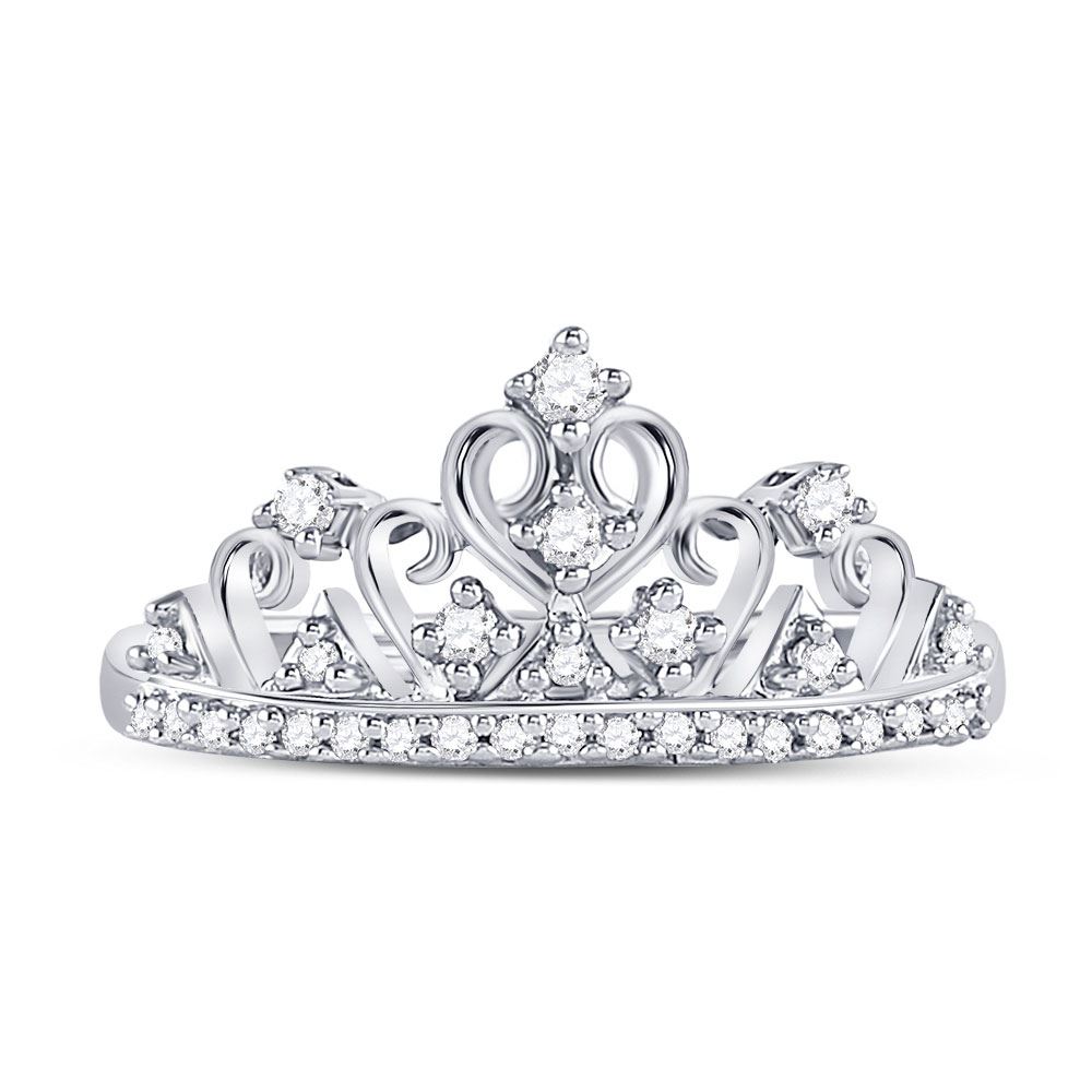 10k White Gold Round Diamond Womens Womens Crown Tiara Cocktail Band 1/5 Cttw