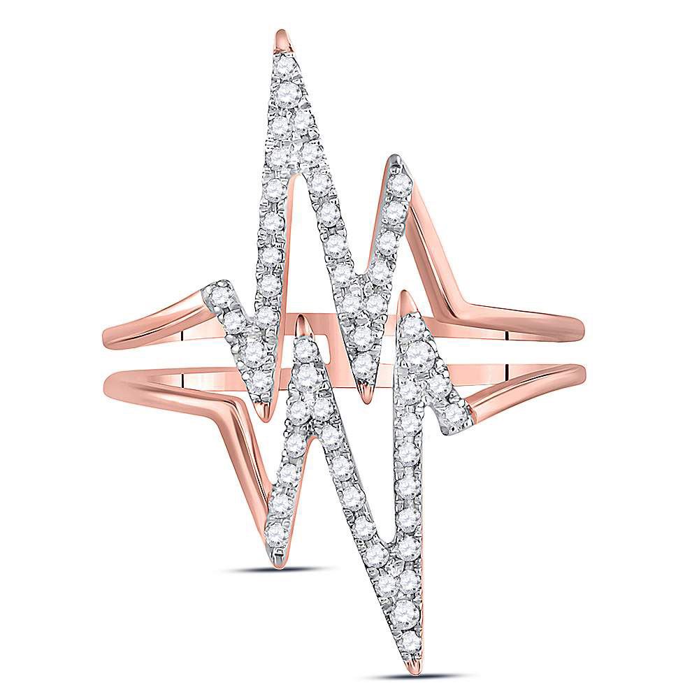 10kt Rose Gold Womens Round Diamond Double Heartbeat Ring 1/5 Cttw